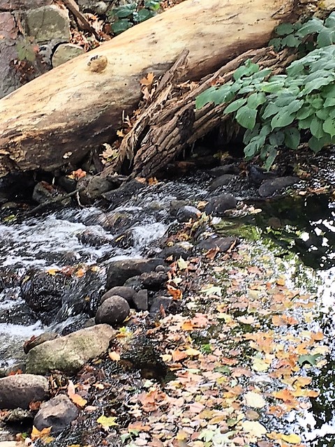 Riverbed rocks made for difficult walking, these just below the millpond dam.