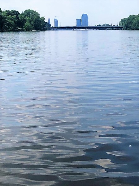 The Ann St bridge and downtown from Riverside Park, Grand Rapids